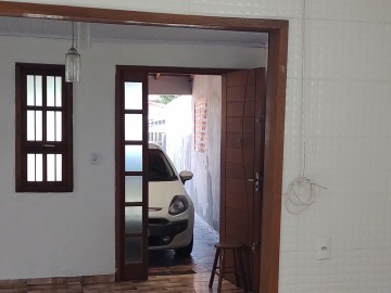 Casa com 03 dormitorios, sala, cozinha ampla, portão eletrônico, aberturas em madeira.