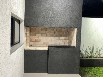 Casa 03 dormitórios, todos com sacada, suíte 43m2(com lareira, sacado, banheiro c/iluminação zenital-teto em vidro), sala de estar c/lareira, sala jantar, churrasqueira para espeto e parrilla, piscina.