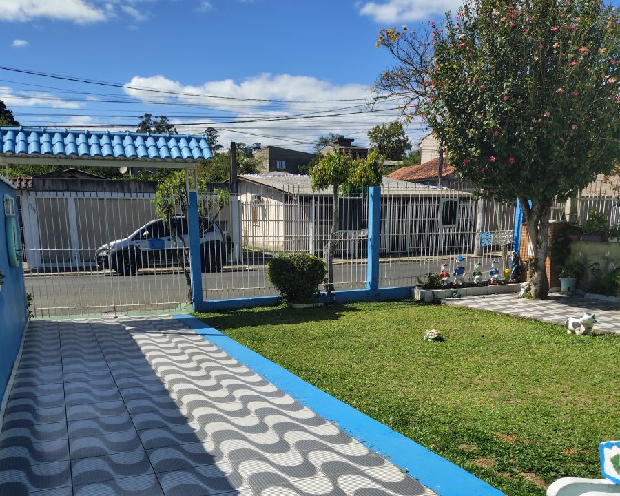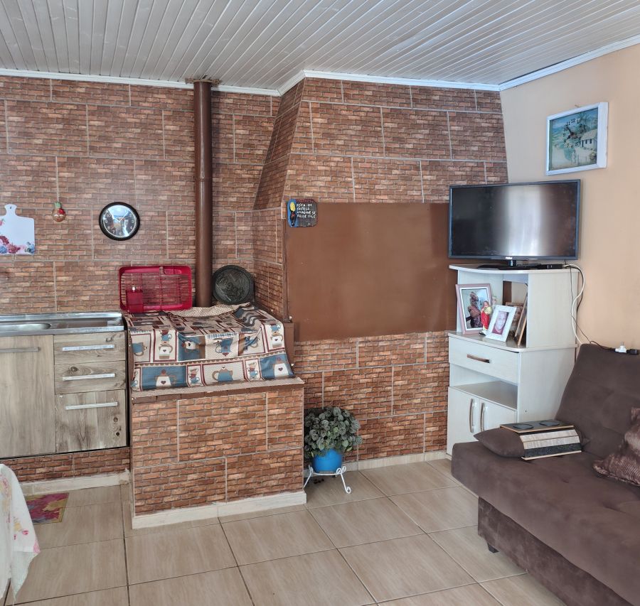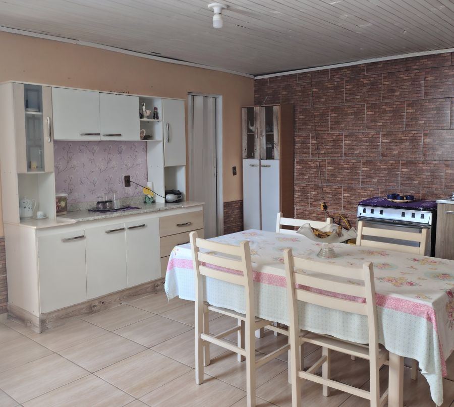 Bela casa 02 dormitórios opção 3 dormitório, sala, cozinha, garagem coberta e fechada para 05 carros, sala com churrasqueira e fogão campeiro.