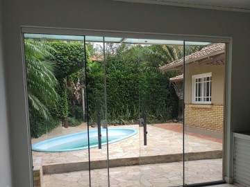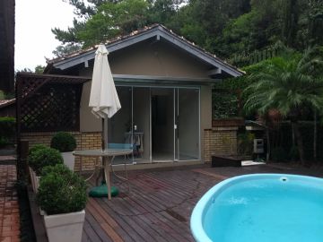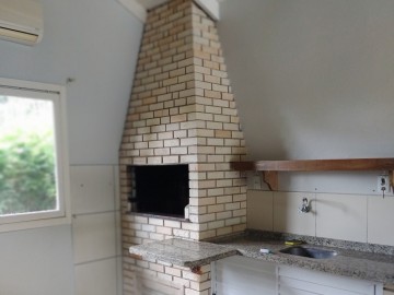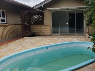 Casa 03 dormitorios(01 suíte), piso aquecido em toda casa, closet, lareira, salão de festas, piscina, aberturas em madeira, jardim.